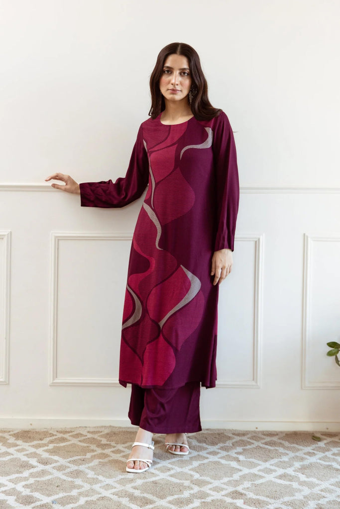 Anni Designer Women'S Rayon Blend Straight Printed Kurta With Palazzo (Dakshayini Wine_Xl_Wine_X-Large),Wine,XL,Rayon Blend,Regular,