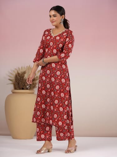 Anni Designer Women'S Rayon Blend Straight Printed Kurta With Palazzo (Peton Red_Xl_Red_X-Large),Red,XL,Rayon Blend,Regular,