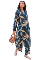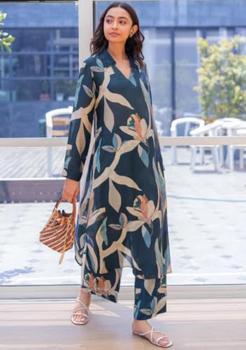 Anni Designer Women'S Rayon Blend Straight Printed Kurta With Palazzo (Pitama Blue_S_Blue_Small),Blue,S,Rayon Blend,Regular,