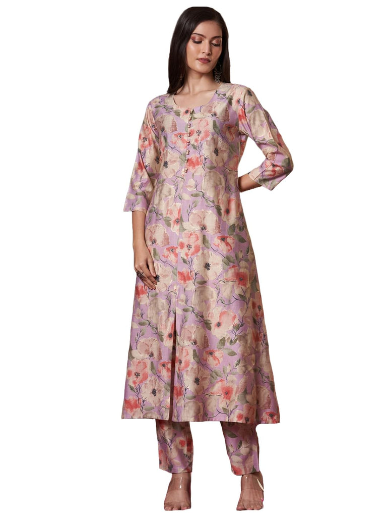 Anni Designer Women'S Rayon Blend Straight Printed Kurta With Pant (Bhaskar Lavender_L_Lavender_Large),Lavender,L,Rayon Blend,A-Line,