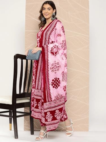 Descriptionanni Designer Women'S Rayon Blend Straight Printed Kurta With Pant & Dupatta (Ball-Purple_4Xl_Purple_Xxxx-Large)
