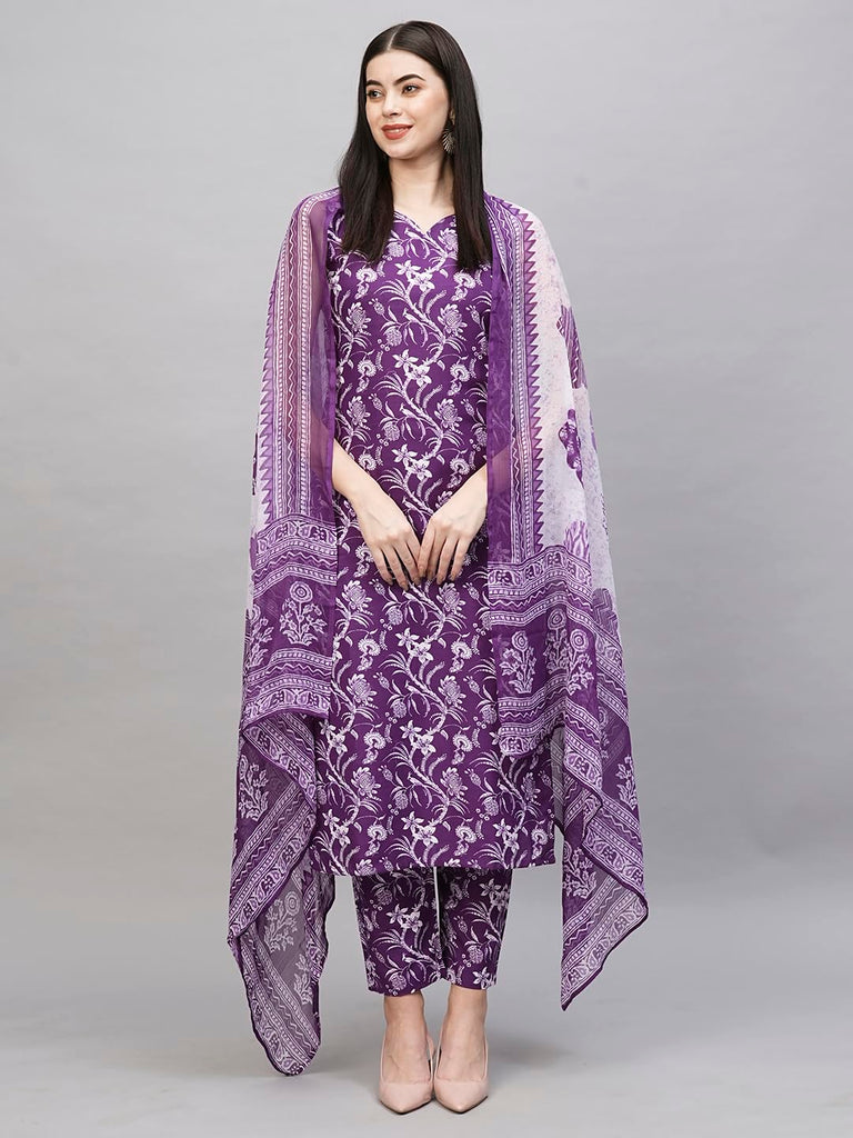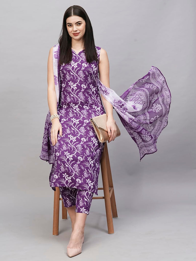 Anni Designer Women'S Rayon Blend Straight Printed Kurta With Pant & Dupatta (Ball-Purple-Rms_Xl_Purple_X-Large)