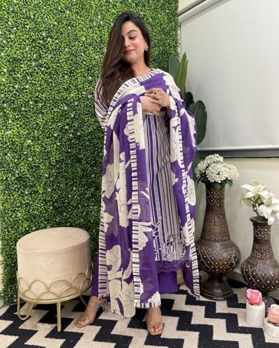 Anni Designer Women'S Rayon Blend Straight Printed Kurta With Pant & Dupatta (Exhuma Begani_L_Begani_Large),Begani,L,Rayon Blend,Regular,
