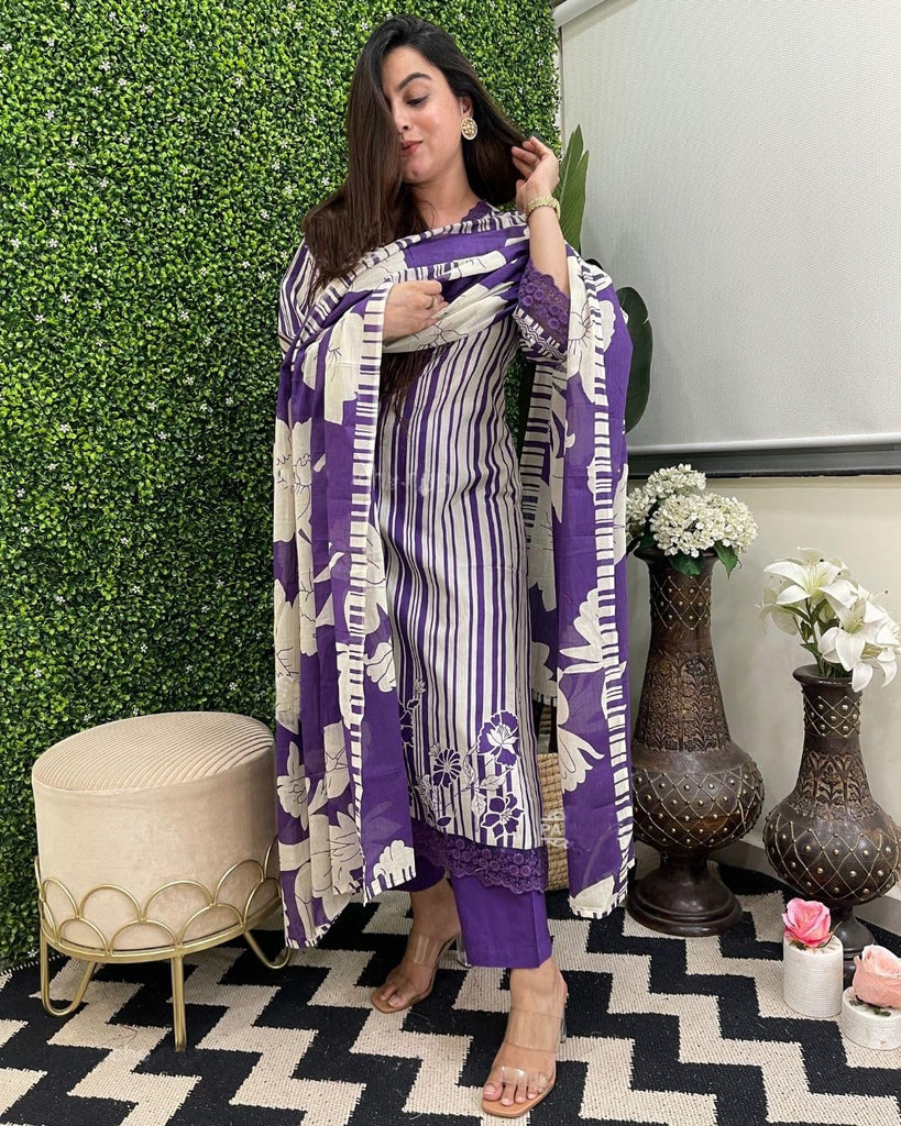Anni Designer Women'S Rayon Blend Straight Printed Kurta With Pant & Dupatta (Exhuma Begani_M_Begani_Medium)