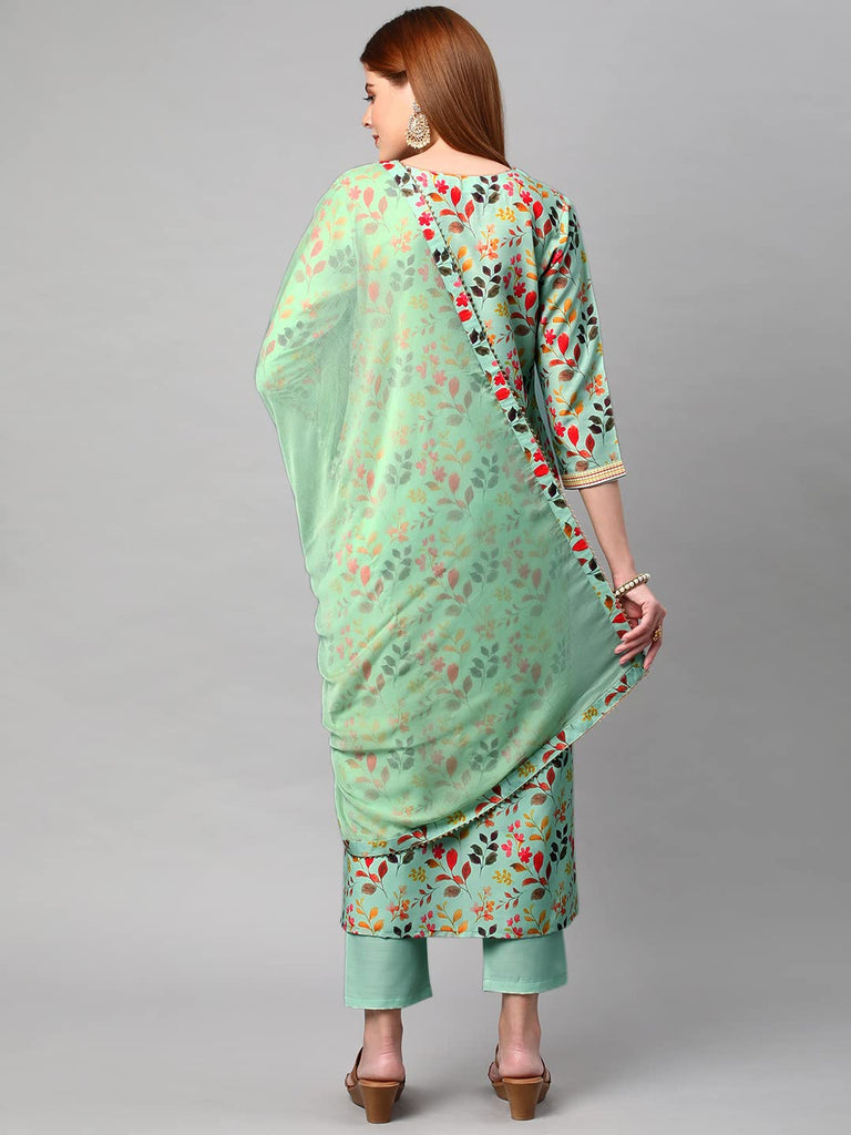 Descriptionanni Designer Women'S Rayon Blend Straight Printed Kurta With Pant & Dupatta (Kaleping-Pista_L_Green_Large)