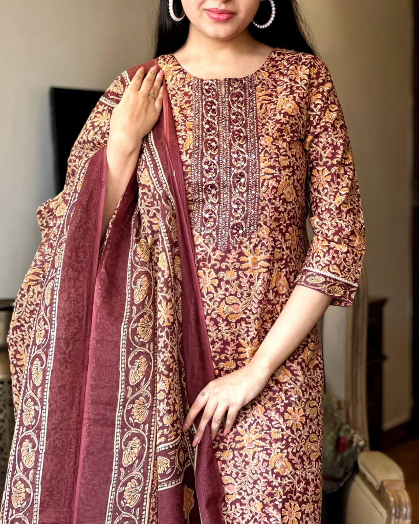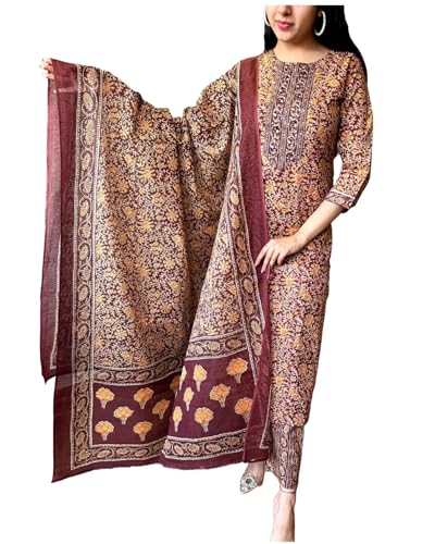 Anni Designer Women'S Rayon Blend Straight Printed Kurta With Pant & Dupatta (Maslona Maroon_Xl_Maroon_X-Large),Maroon,XL,,,