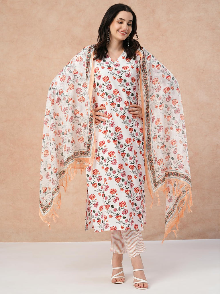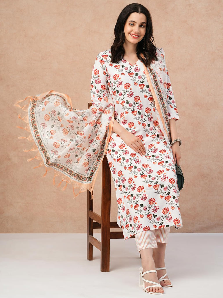 The kurta set has printed work, adding a decorative touch to the overall design.