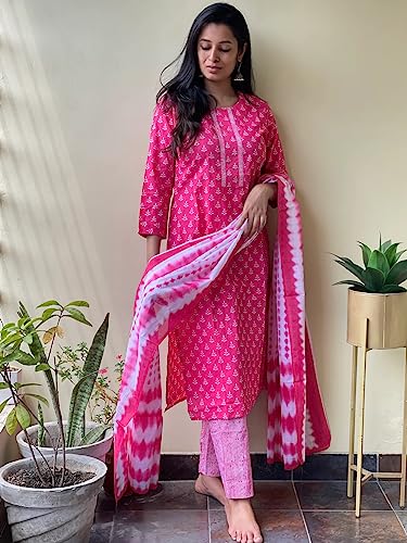 Descriptionanni Designer Women'S Rayon Blend Straight Printed Kurta With Pant & Dupatta (Noor Pink-Mn_Xxl_Pink_Xx-Large)