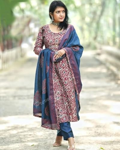 Anni Designer Women'S Rayon Blend Straight Printed Kurta With Pant & Dupatta (Parimat Red_Xxl_Red_Xx-Large),Red,2XL,Rayon Blend,Regular,