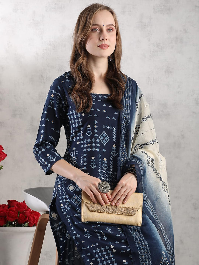 Anni Designer Women'S Rayon Blend Straight Printed Kurta With Pant & Dupatta (Paulmi Blue-Vks02_M_Blue_Medium)