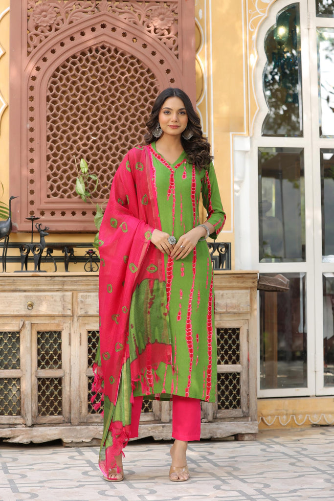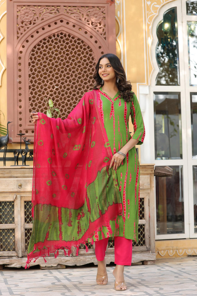 Anni Designer Women'S Rayon Blend Straight Printed Kurta With Pant & Dupatta (Sibori-Methi-Bfv_L_Green_Large)