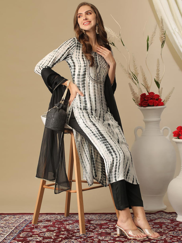 The Kurta features a Straight style and has a calf-length design, making it suitable for various occasions.