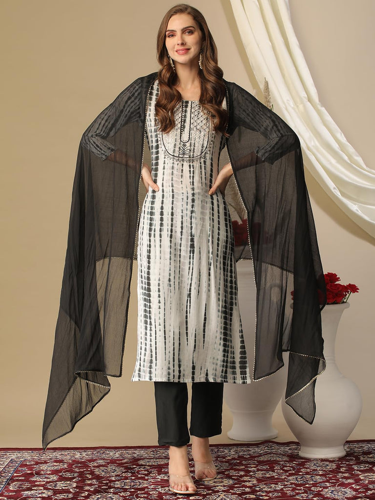 The ANNI DESIGNER set includes one Kurta, one pair of pants, and one Dupatta.