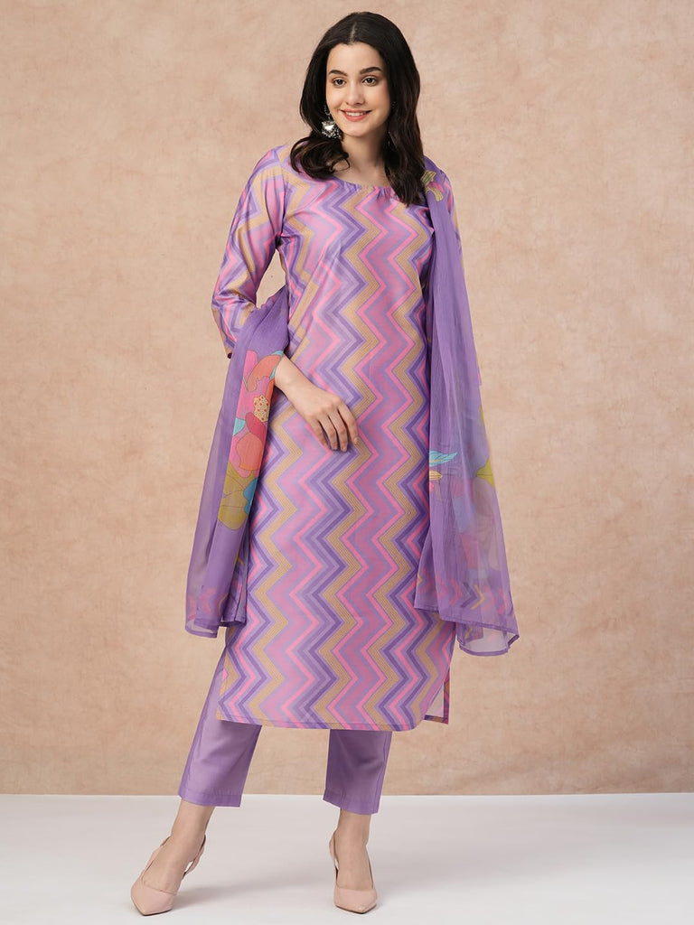 Anni Designer Women'S Rayon Blend Straight Printed Kurta With Pant & Dupatta (Zaggu Purple-Nw_Xl_Purple_X-Large),Purple,XL,,,