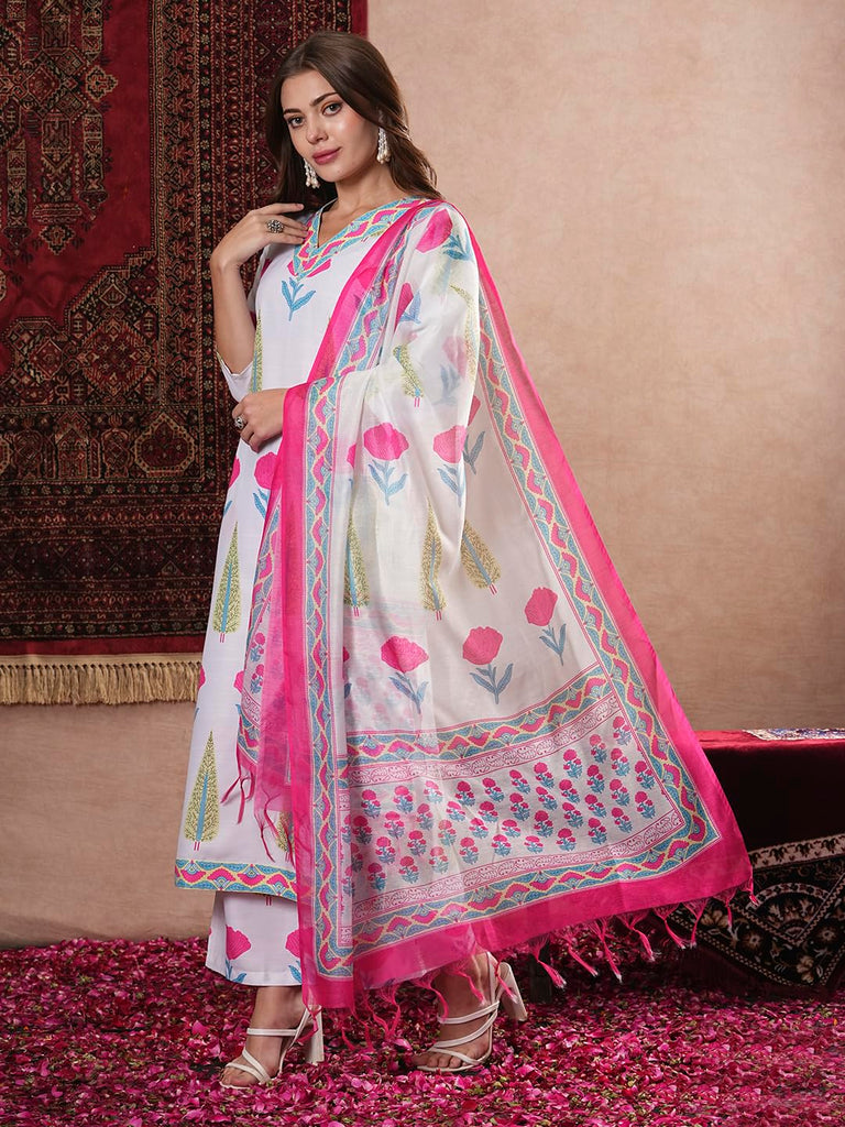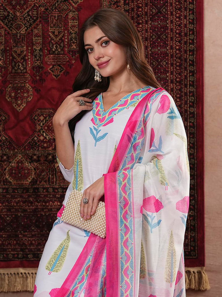 Anni Designer Women'S Rayon Blend Straight Printed Kurta With Pant & Dupatta (Ziggi White-Vks01_S_White_Small)