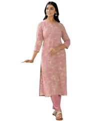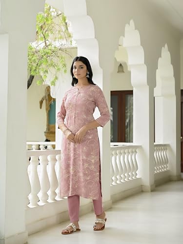 Anni Designer Women'S Rayon Blend Straight Printed Kurta With Pant (Ghasi Pink_L_Pink_Large),Pink,L,Rayon Blend,Regular,