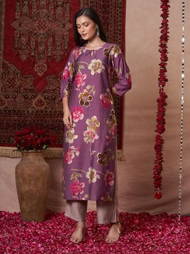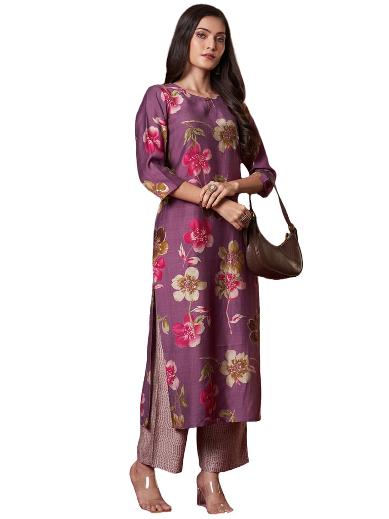Anni Designer Women'S Rayon Blend Straight Printed Kurta With Pant (Kejri Purple_Xl_Purple_X-Large),Purple,XL,Rayon Blend,Classic,