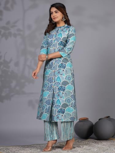 Anni Designer Women'S Rayon Blend Straight Printed Kurta With Pant (Later Blue_S_Blue_Small),Blue,S,Rayon Blend,Regular,Kurta