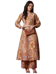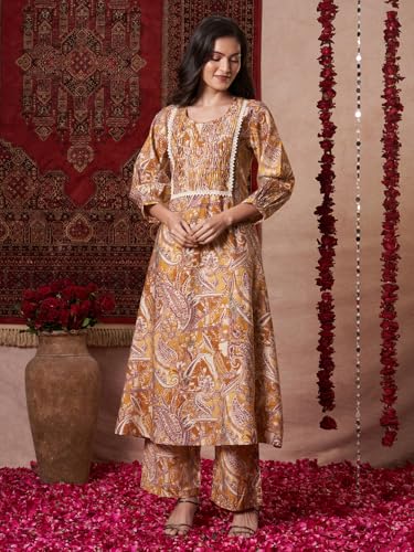 Anni Designer Women'S Rayon Blend Straight Printed Kurta With Pant (Marco Yellow_Xl_Yellow_X-Large),Yellow,XL,Rayon Blend,Classic,