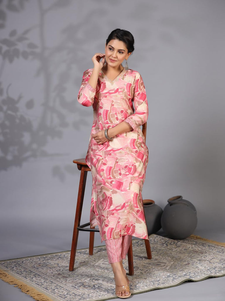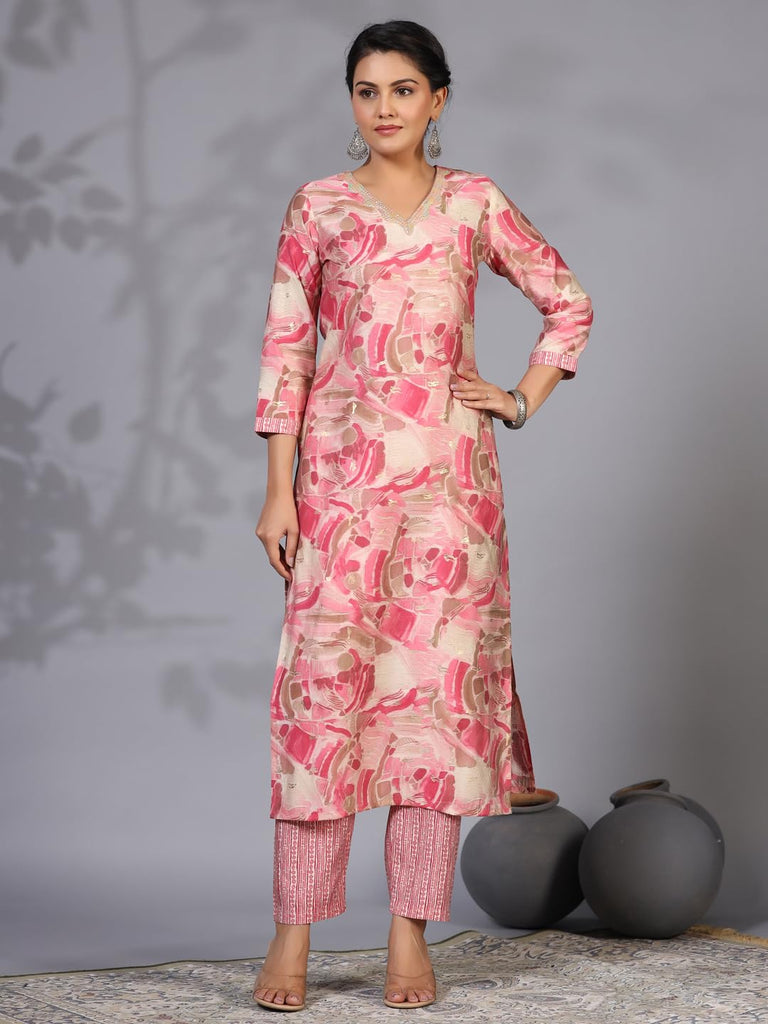 Anni Designer Women'S Rayon Blend Straight Printed Kurta With Pant (Nissu Pink-Nw_L_Pink_Large)