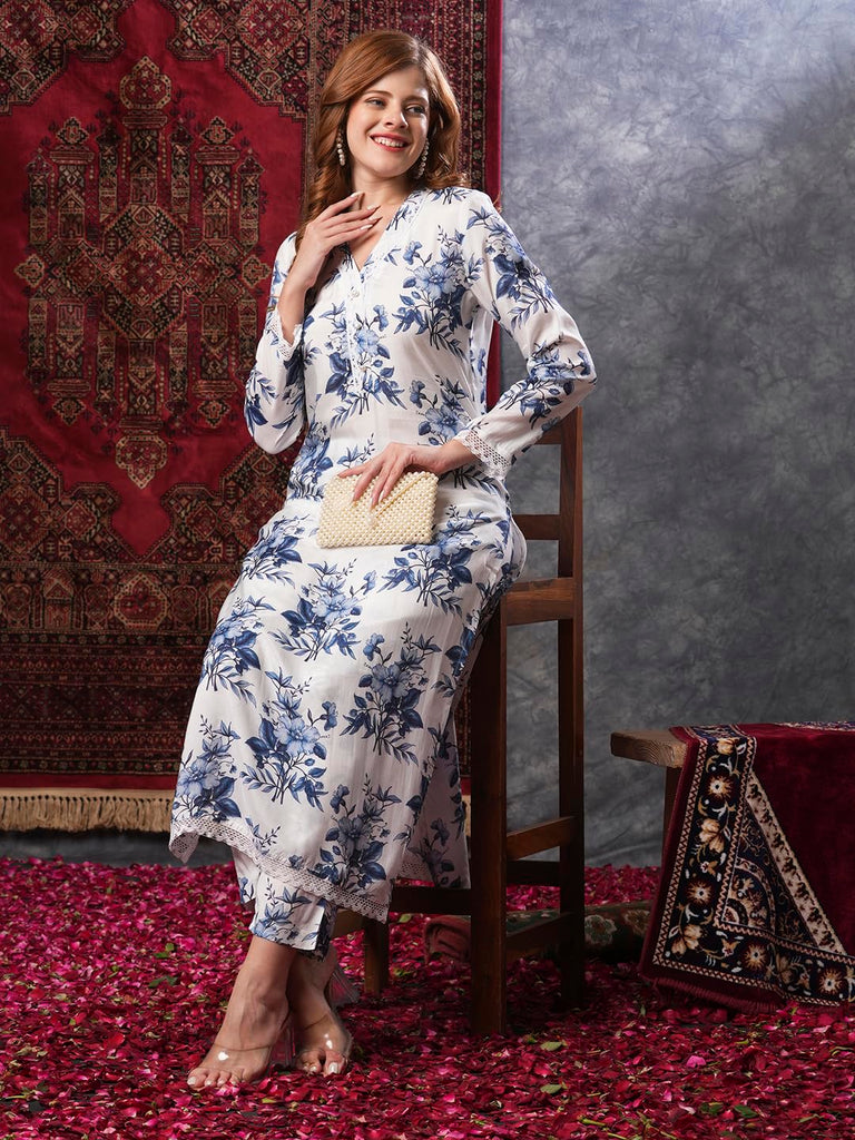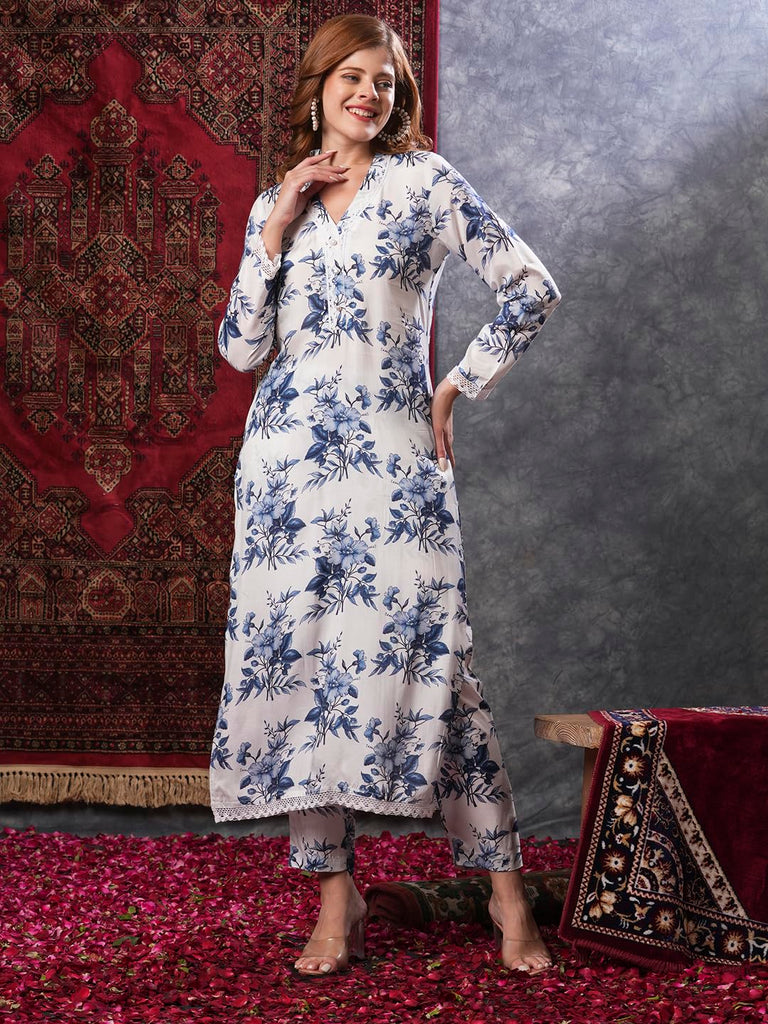Anni Designer Women'S Rayon Blend Straight Printed Kurta With Pant (Pivar White-Vks02_Xl_White_X-Large)