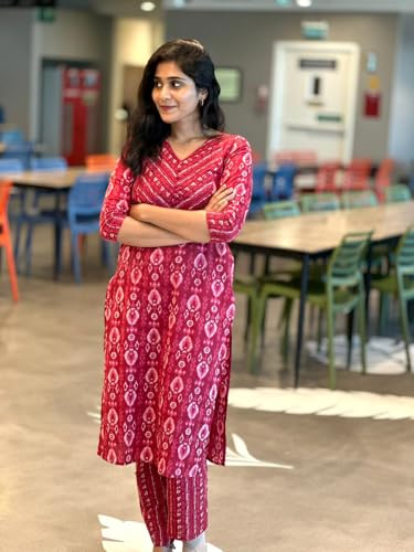 Anni Designer Women'S Rayon Blend Straight Printed Kurta With Pant (Risto Pink_Xl_Pink_X-Large),Pink,XL,Rayon Blend,Regular,Kurta
