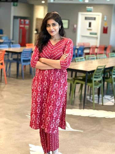 Anni Designer Women'S Rayon Blend Straight Printed Kurta With Pant (Risto Pink_Xxl_Pink_Xx-Large),Pink,2XL,Rayon Blend,Regular,Kurta