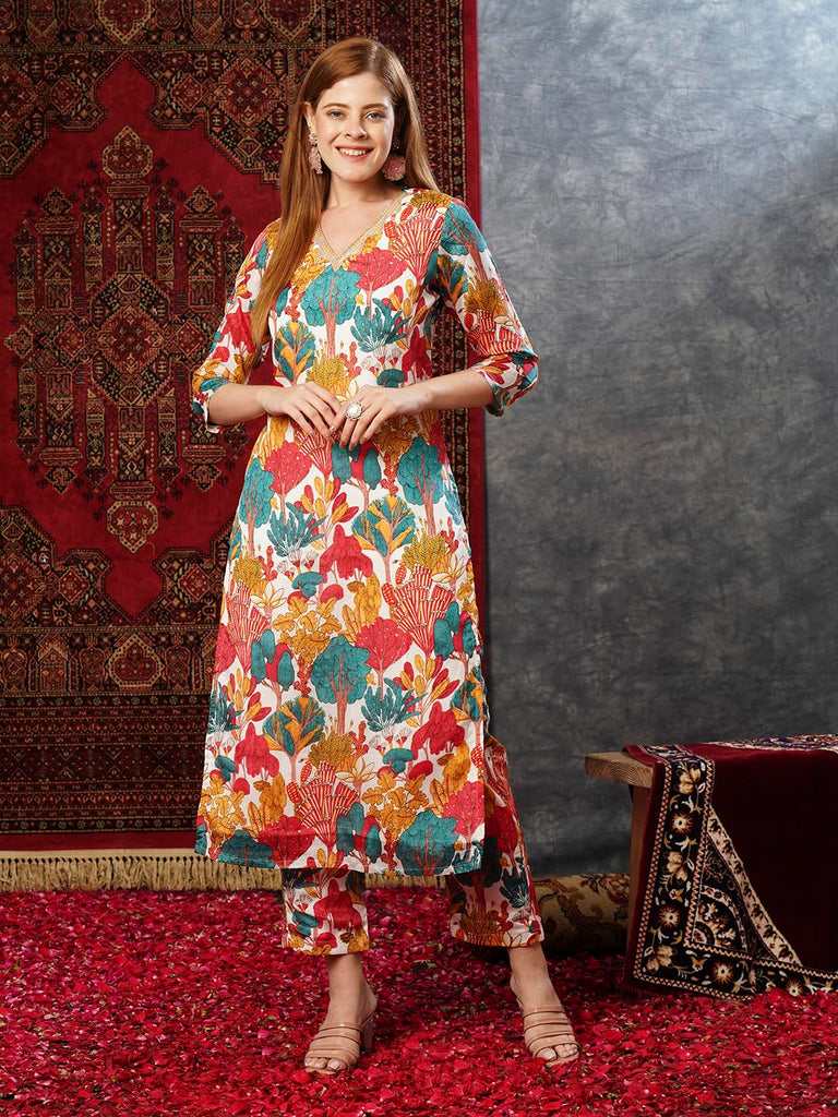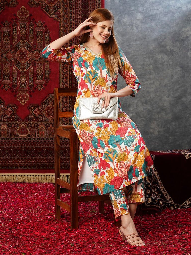 Anni Designer Women'S Rayon Blend Straight Printed Kurta With Pant (Samlok White-Jl_Xxl_White_Xx-Large),White,2XL,,,