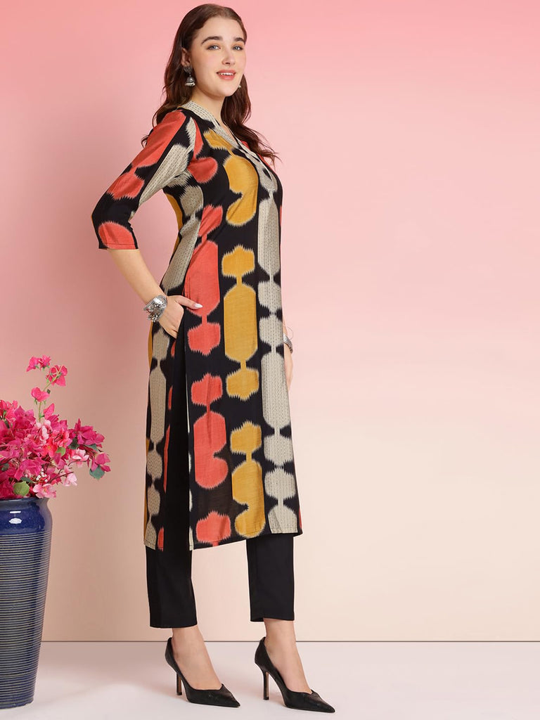 Anni Designer Women'S Rayon Blend Straight Printed Kurta With Pant (Surdas Black-Vks01_Xl_Black_X-Large)