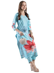Anni Designer Women'S Rayon Blend Straight Printed Kurta With Pant (Susan Sky-Vks02_M_Sky Blue_Medium)