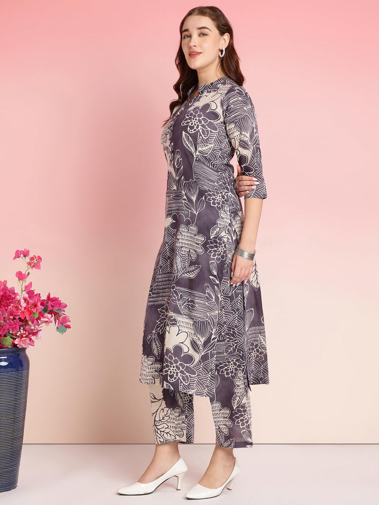 Anni Designer Women'S Rayon Blend Straight Printed Kurta With Pant (Tomsk Purple_S_Purple_Small),Purple,S,Rayon Blend,Anarkali,