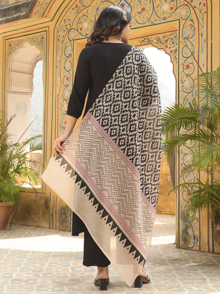Anni Designer Women'S Rayon Blend Straight Solid Kurta With Pant & Dupatta (Jamana Black-Vks01_M_Black_Medium)
