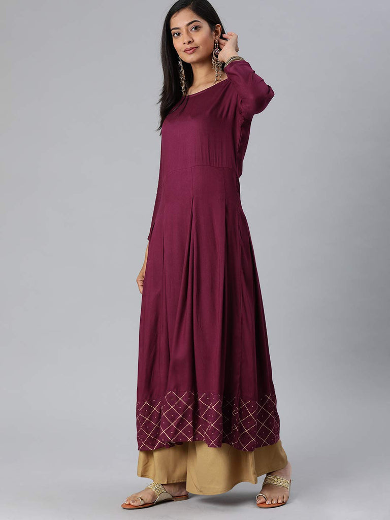 Anni Designer Women'S Rayon Gold-Toned Solid Kurta With Palazzos & Dupatta (Purple L),Purple,L,Rayon,Anarkali,Dupatta