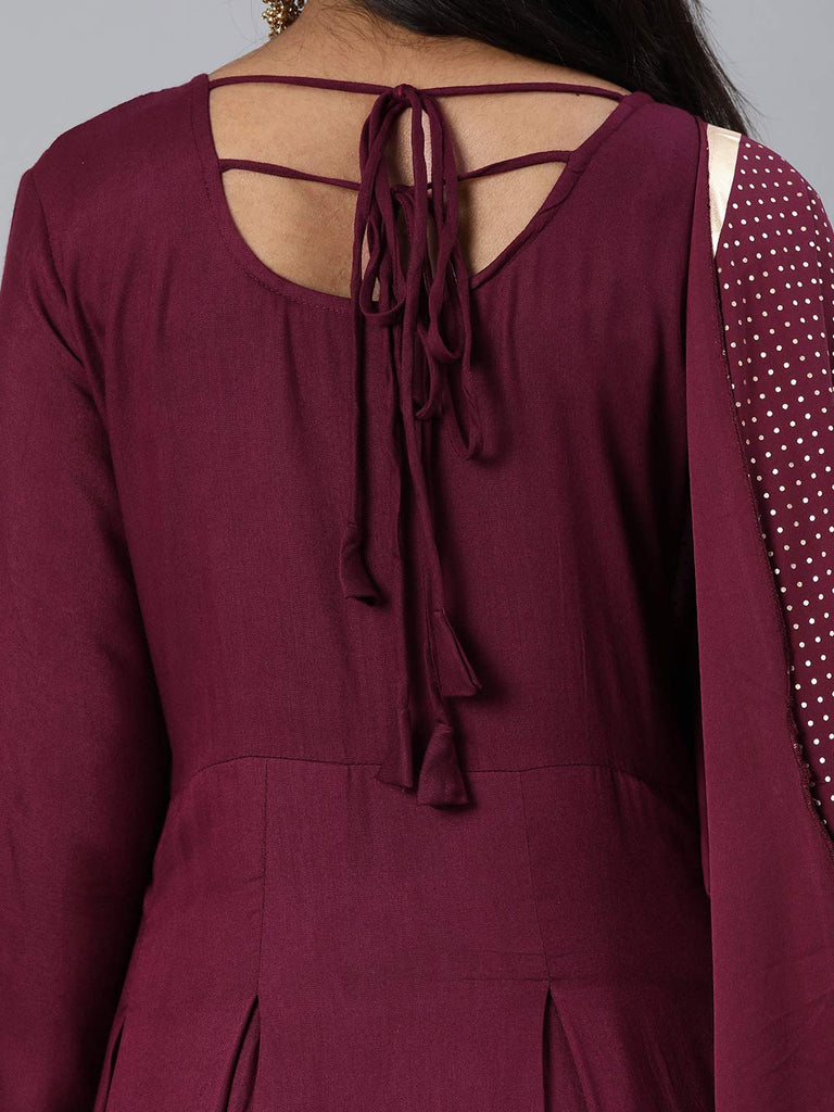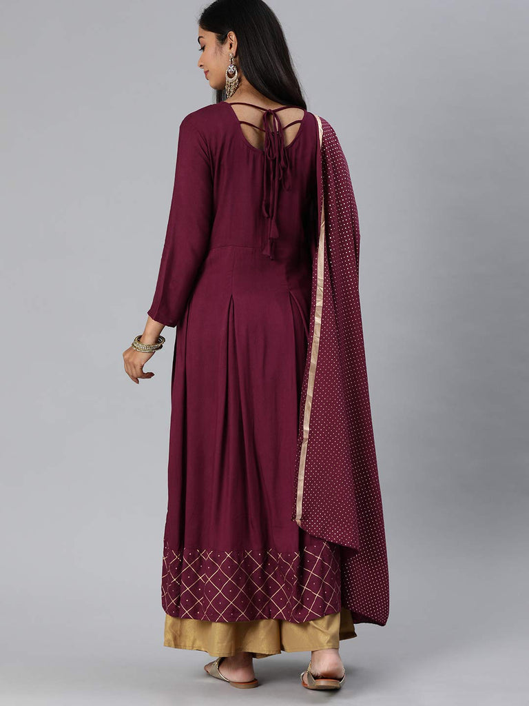 Anni Designer Women'S Rayon Gold-Toned Solid Kurta With Palazzos & Dupatta (Purple Xl),Purple,XL,,,