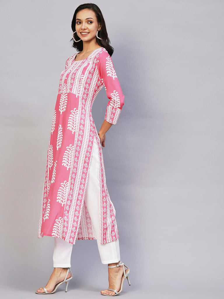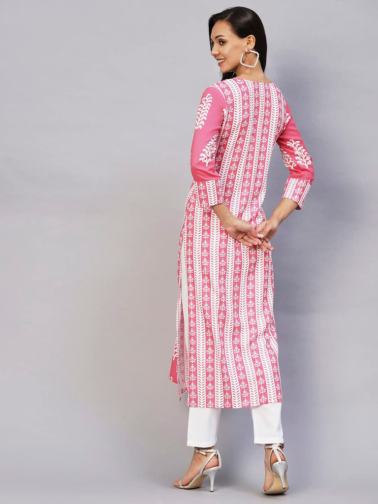 Anni Designer Women'S Rayon Printed Straight Kurta (Oni101 White-Nw_S_Pink_Small),Pink,S,Rayon,Regular,Kurta