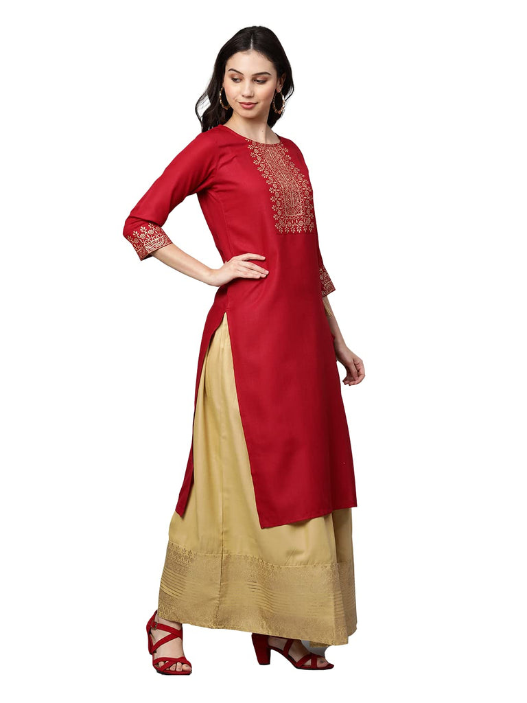The ANNI DESIGNER Women's Straight Rayon Kurta is versatile and can be worn for both casual and semi-formal occasions.