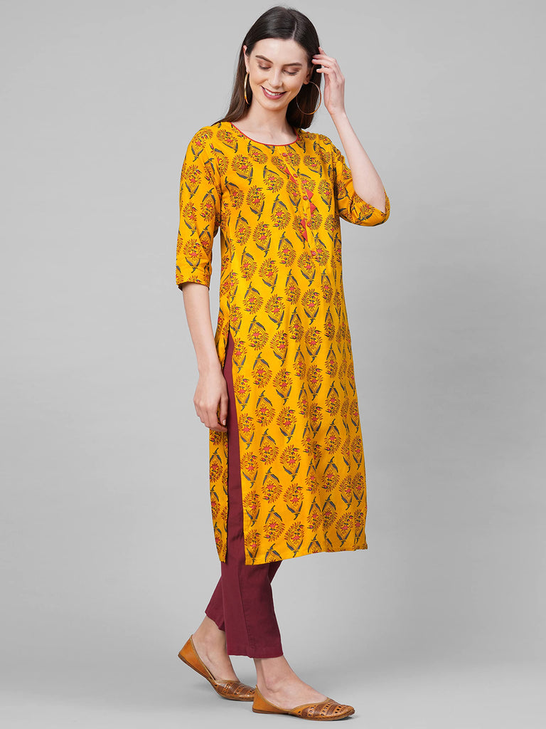Descriptionanni Designer Women'S Rayon Straight Printed Kurta (Aumz Yellow_Xxl-Yellow_Xx-Large)