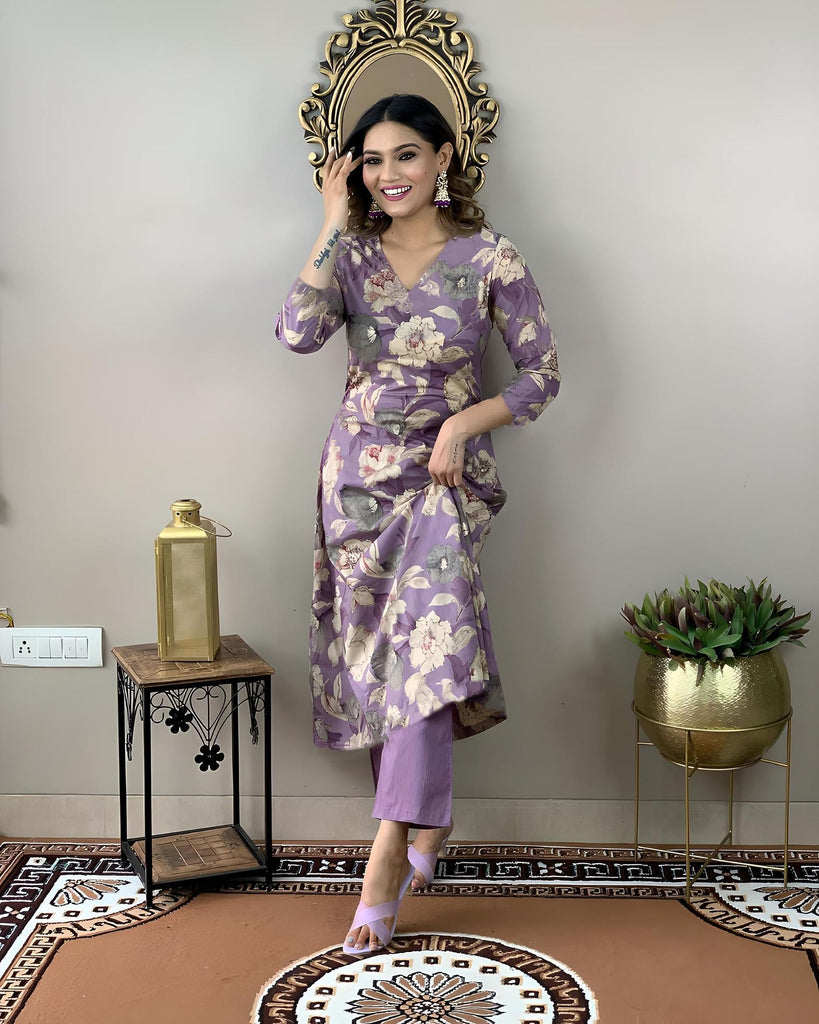 Descriptionanni Designer Women'S Rayon Straight Printed Kurta With Pant Set (Dhun Purple_S_Purple_Small)