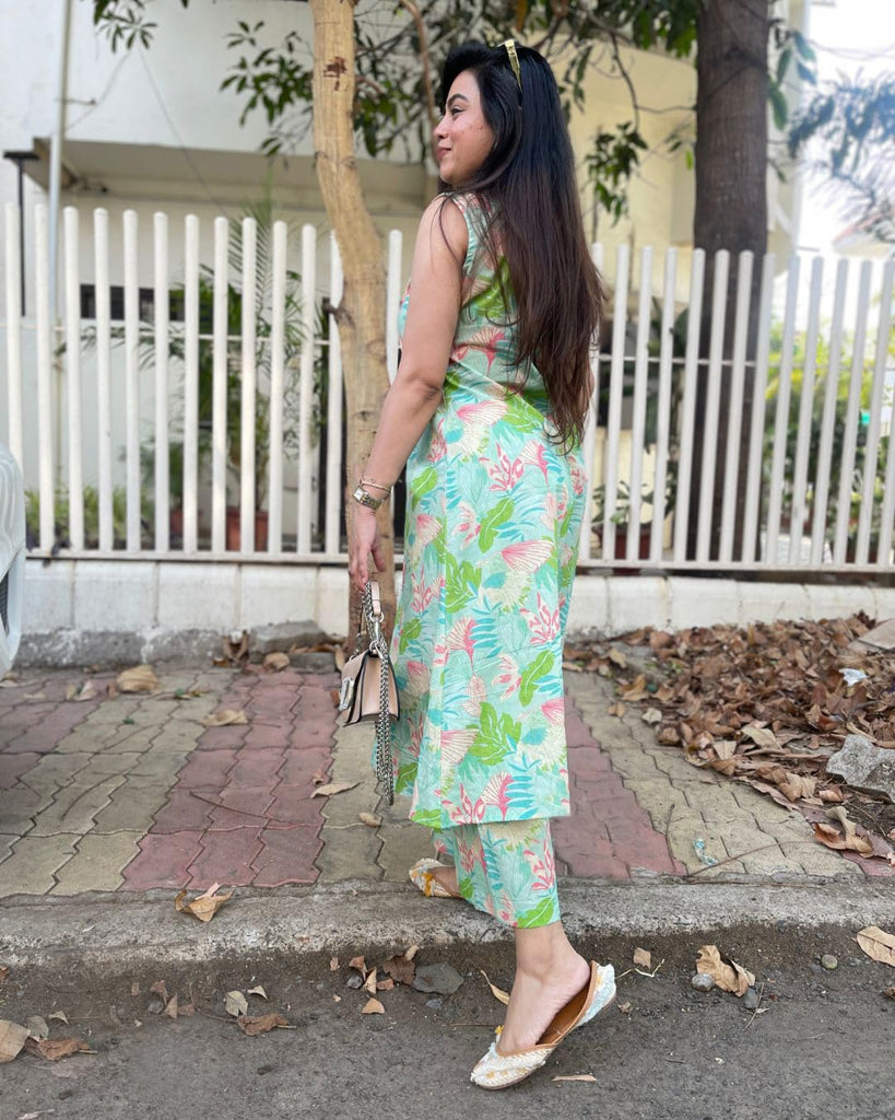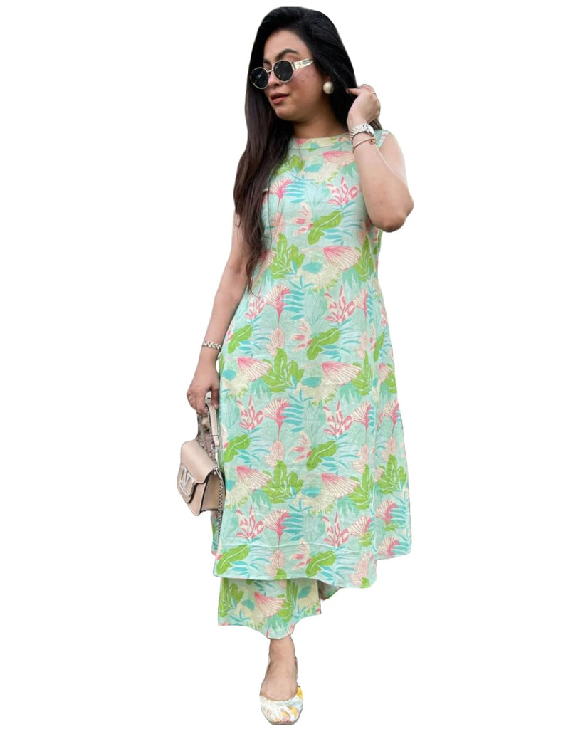 Anni Designer Women'S Rayon Viscose A-Line Printed Kurta With Pant (Uzma Green_S_Green_Small),Green,S,Rayon,A-Line,