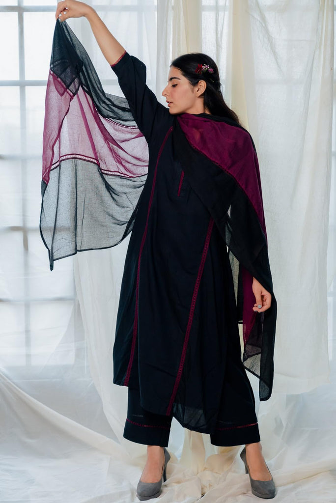 Anni Designer Women'S Rayon Viscose A-Line Solid Kurta With Pant & Dupatta (Nanad Black_M_Black_Medium)