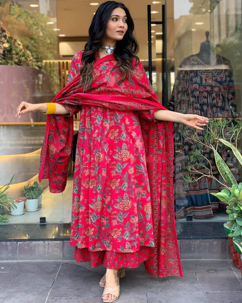 Anni Designer Women'S Rayon Viscose Anarkali Printed Kurta With Palazzo & Dupatta (Cia Pink_4Xl_Pink_Xxxx-Large)