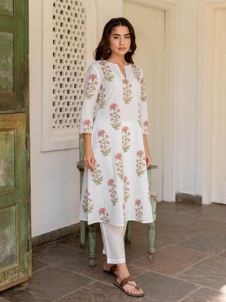 Anni Designer Women'S Rayon Viscose Anarkali Printed Kurta With Pant (Dilam White_Xxl_White_Xx-Large),White,2XL,Rayon Blend,Anarkali,