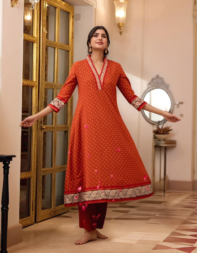 Anni Designer Women'S Rayon Viscose Anarkali Printed Kurta With Pant (Karidos Orange-Vks04_Xl_Orange_X-Large),Orange,XL,,,