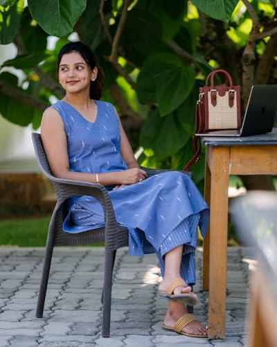 Anni Designer Women'S Rayon Viscose Anarkali Printed Kurta With Pant (Numanta Blue_L_Blue_Large),Blue,L,Cotton Blend,Straight,