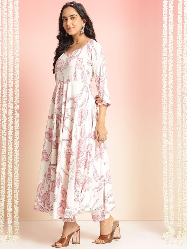 Anni Designer Women'S Rayon Viscose Anarkali Printed Kurta With Pant (Rishiva Cream_Xxl_Cream_Xx-Large),Cream,2XL,Rayon Blend,Anarkali,