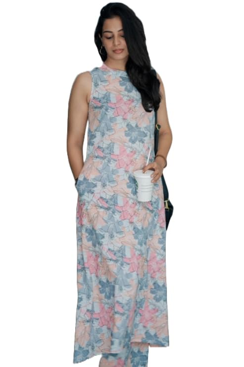 Anni Designer Women'S Rayon Viscose Anarkali Printed Kurta With Pant (Sbl Grey_4Xl_Grey_Xxxx-Large),Grey,4XL,Rayon,Anarkali,