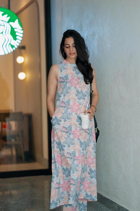 Anni Designer Women'S Rayon Viscose Anarkali Printed Kurta With Pant (Sbl Grey_L_Grey_Large),Grey,L,Rayon,Anarkali,