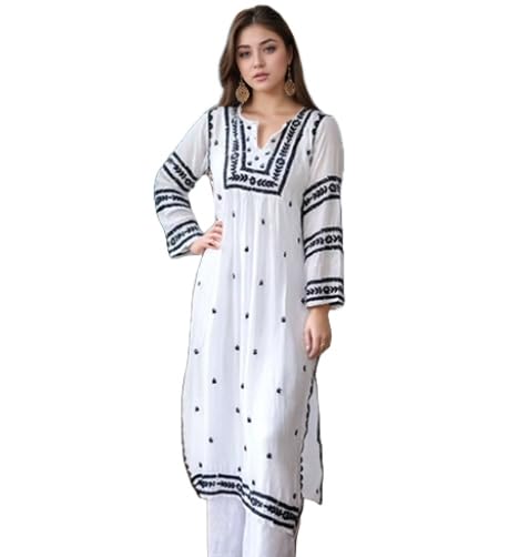 Anni Designer Women'S Rayon Viscose Chikankari Embroidered Straight Kurta (Stho White-Vks01_S_White_Small)