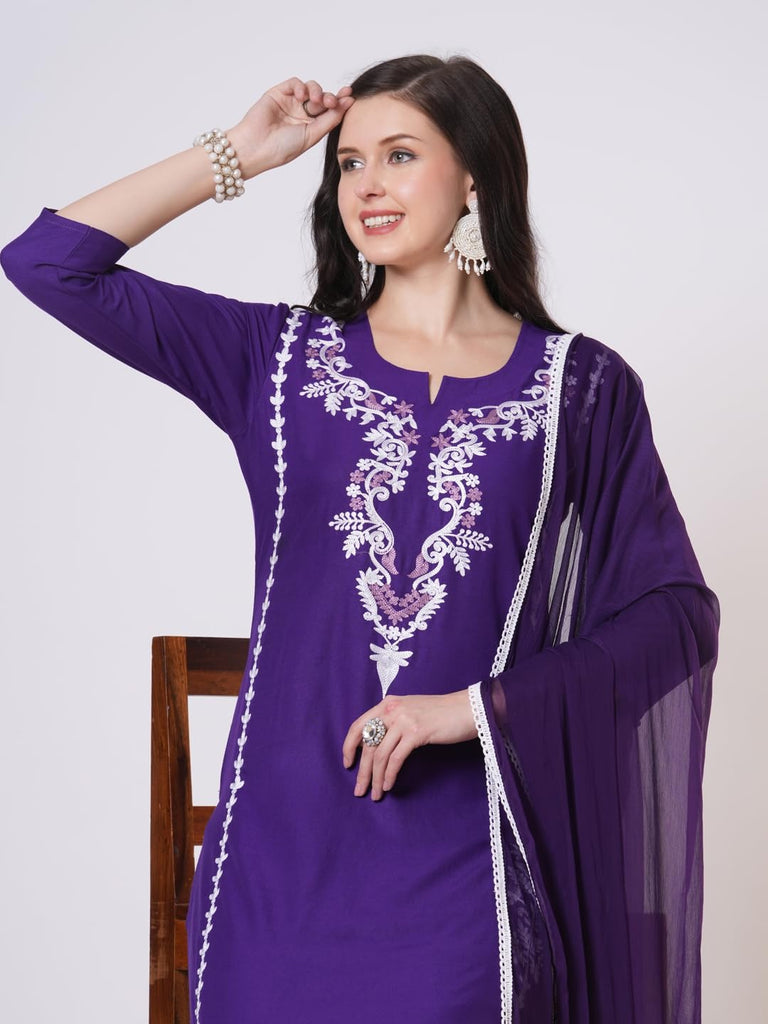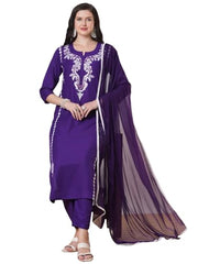 Anni Designer Women'S Rayon Viscose Embroidered Straight Kurta With Pant & Dupatta (Jayashuda Begani-Vks01_S_Begani_Small)