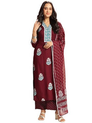 Anni Designer Women'S Rayon Viscose Floral Straight Kurta With Pant & Dupatta (Belagavi Vks04_Wine_X-Large)